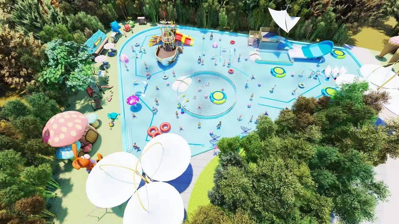 加勒比水世界+熊猫主题无动力乐园+骑士旋转木马+皇家小火车+趣味秋千+2-3项课程安排(游泳,水上急救,儿童创意绘画)+营地站点游戏+天幕影院,音乐节,亲子游戏互动